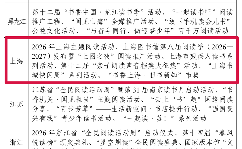 近日,国家新闻出版署等印发通知,定于4月20日至26日组织实施2026年“全民阅读活动周”。上海将举行2026年上海主题阅读活动等重点活动。