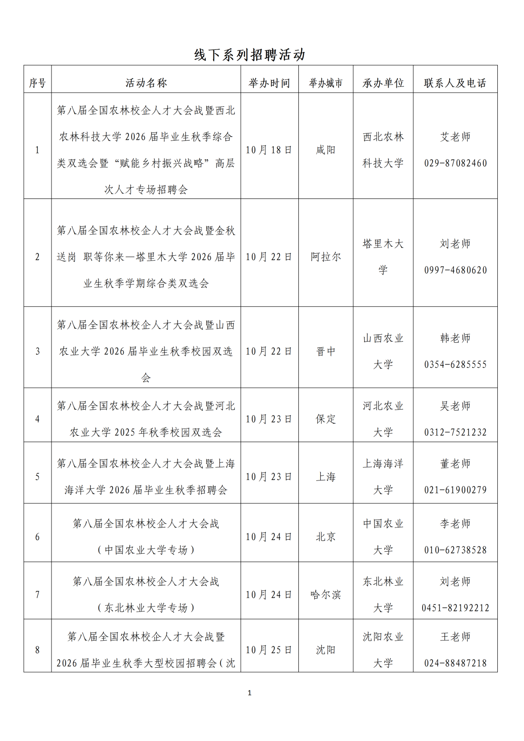 全国农林行业面向2026届高校毕业生