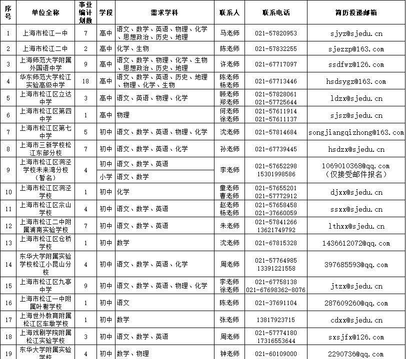 松江区教育局下属相关事业单位拟面向社会公开招聘优秀教育人才,现将2026年松江区教育系统第一批教师招聘有关事项公告如下。