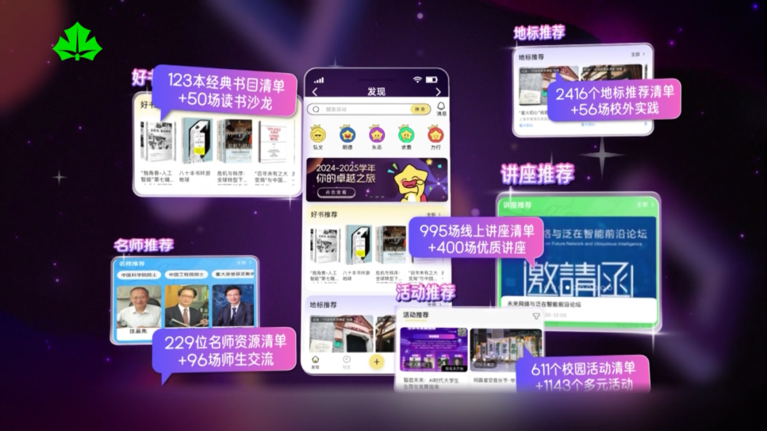 不仅是打造智能体,在生涯教育和前沿技术的融合上,方雅静还带领团队搭建“卓越星”第二课堂数字画像平台。从读书沙龙到师生交流,从校外实践到前沿讲座,平台上提供了超1700场活动,成为了学生们可以自由选择的“宝藏资源库”。