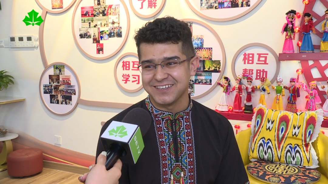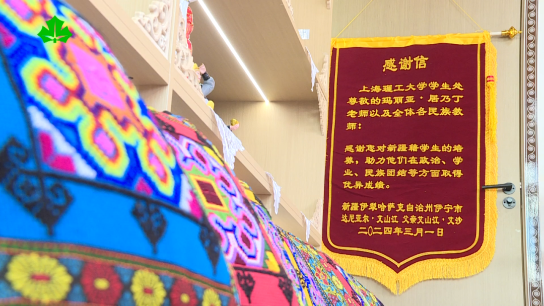 一走进上海理工大学民族团结教育工作室,浓郁的民族特色便映入眼帘,文化展板、学生作品和实践成果一一呈现。这里不仅是一间工作室,更是各民族学生交流融合、共同成长的温暖空间。而整间工作室的布置与设计,正是由玛丽亚与学生共同完成。