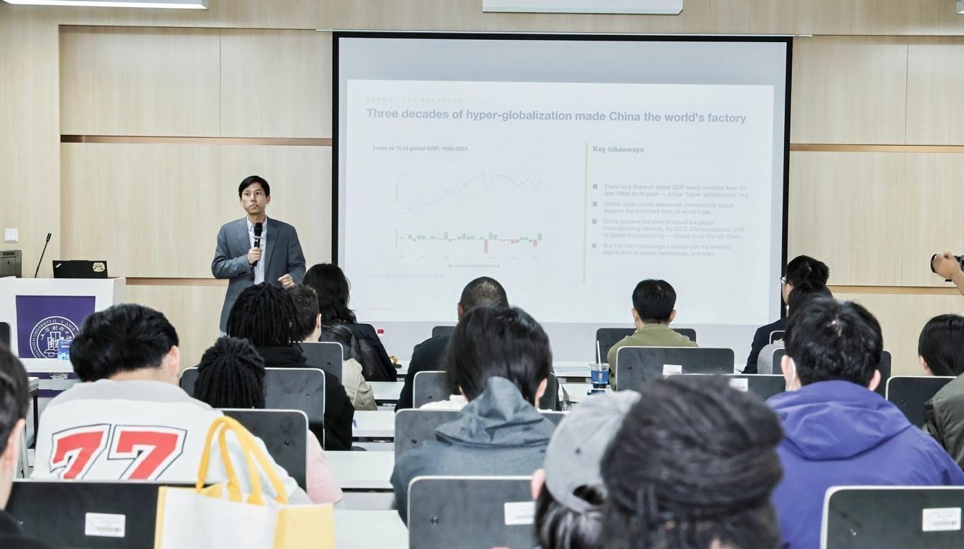 “国际青年学者论坛:数智时代的国际贸易”主题学术沙龙在上海财经大学举行,40余名中外师生齐聚一堂,聚焦数智时代跨国商业融合与经贸交流开展深入研讨。