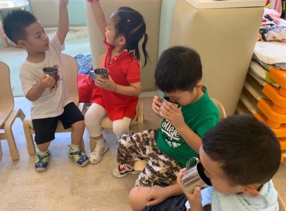 这几天,气温明显升高,张家宅托儿所里增加了绿豆汤、菊花饮,为孩子防暑降温。户外活动也及时调整,改到了室内。给最柔软的人群最暖心的呵护,暑期也不断提升托育服务的软实力。