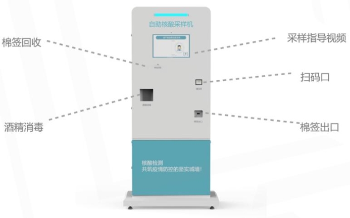 记者了解到,区别于全自动核酸采样机器人,这款自助采样站需要受试者自行完成咽拭子的采样,再将拭子插入回收通道,作为核酸检测闭环的样本依据。产品设计流程符合人性化需求,避免了机器人采样可能带来的疼痛不适与采样部位不准等问题。