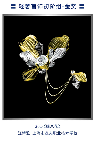 三年前在中招志愿表上写下“上海市逸夫职校”的时候,女孩汪博雅并没有想到,她会成为这个专业中,名字最闪亮的那个——在不久前的2022大学生钻石珠宝首饰创意设计大赛中,她的作品《蝶恋花》于30多家参赛院校中脱颖而出,获得轻奢首饰初阶组金奖。
