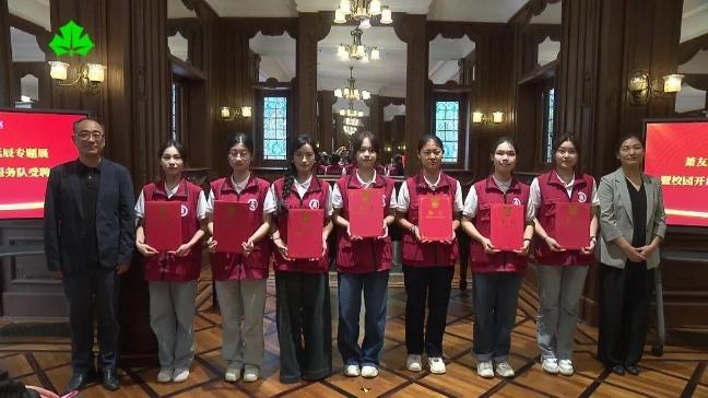 在清水红砖的城市音乐会客厅前,穿着红马甲的上音学子廖梓含正在讲解建筑的前世今生。就在今年10月初,上音校园开放学生志愿服务队正式成立,廖梓含就是首批36名学生志愿者中的一员。
