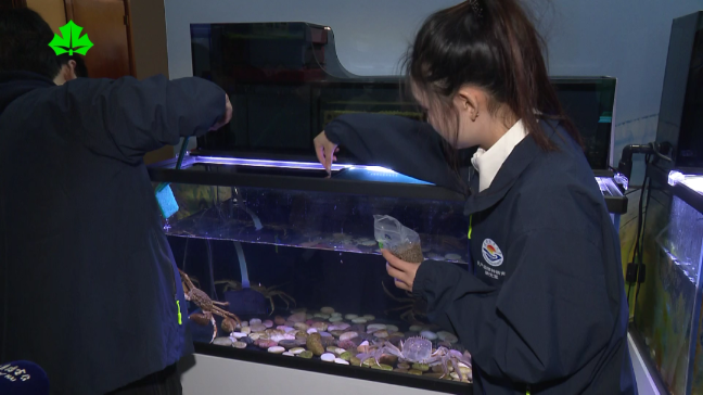 不仅是参观者,大学生也是人民城市建设的参与者。在农业科技新赛道展区,上海海洋大学学生们正在喂食一群有着“大长腿”的大闸蟹。这个河蟹新品种,正是上海海洋大学多年选育出的“江海21”中华绒螯蟹,在上海成蟹养殖的占比已达80%。