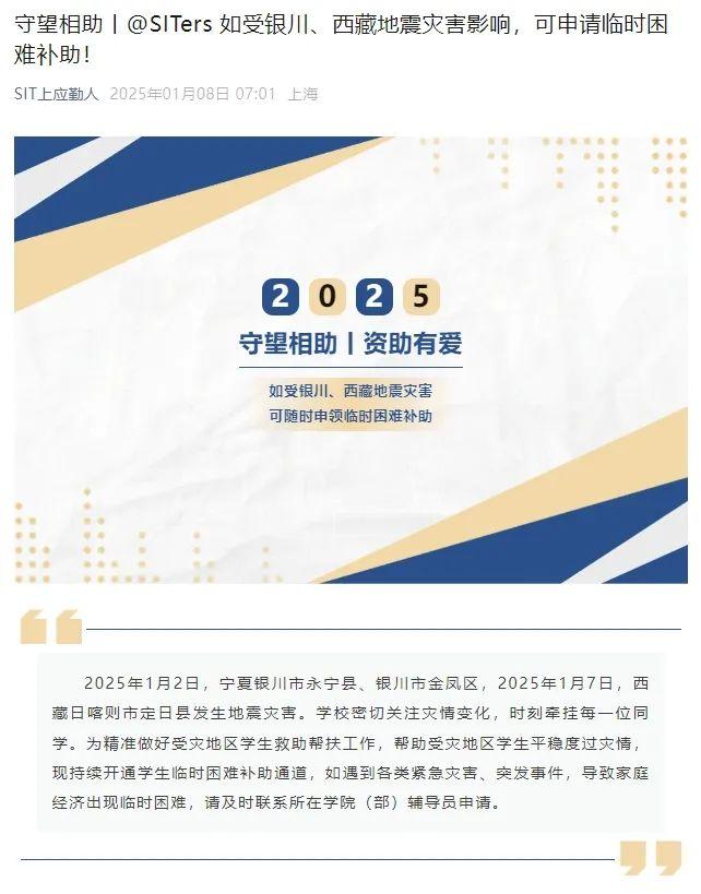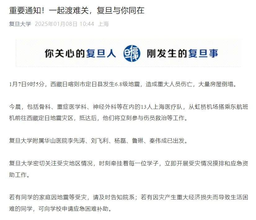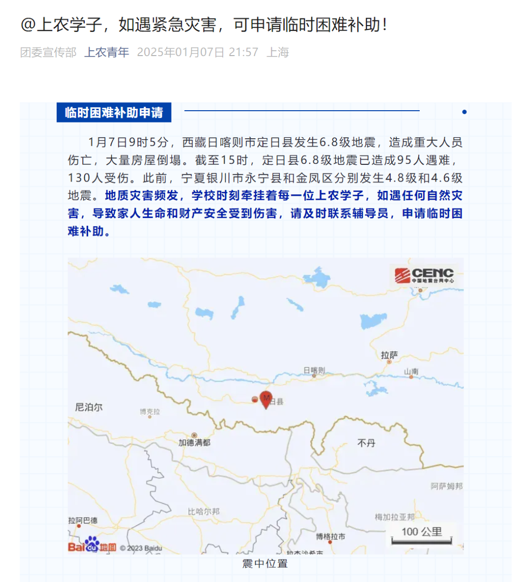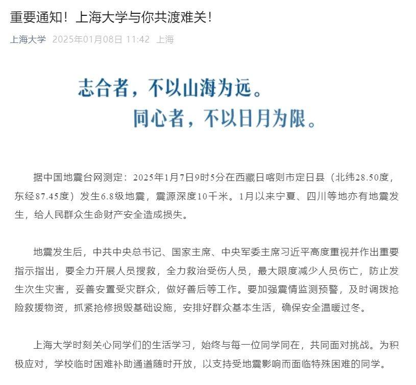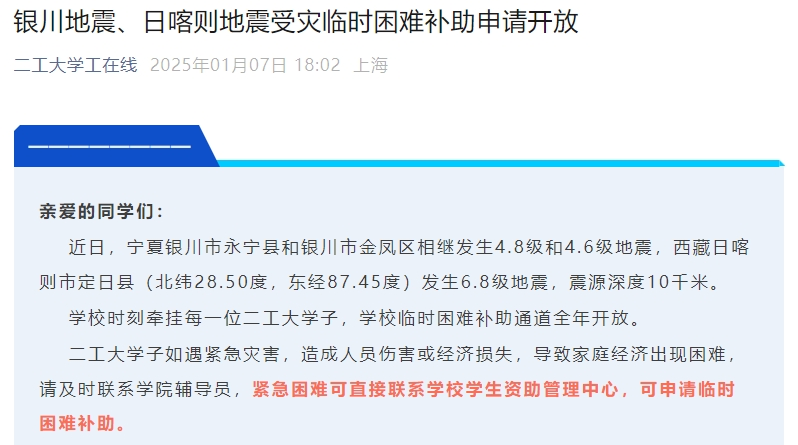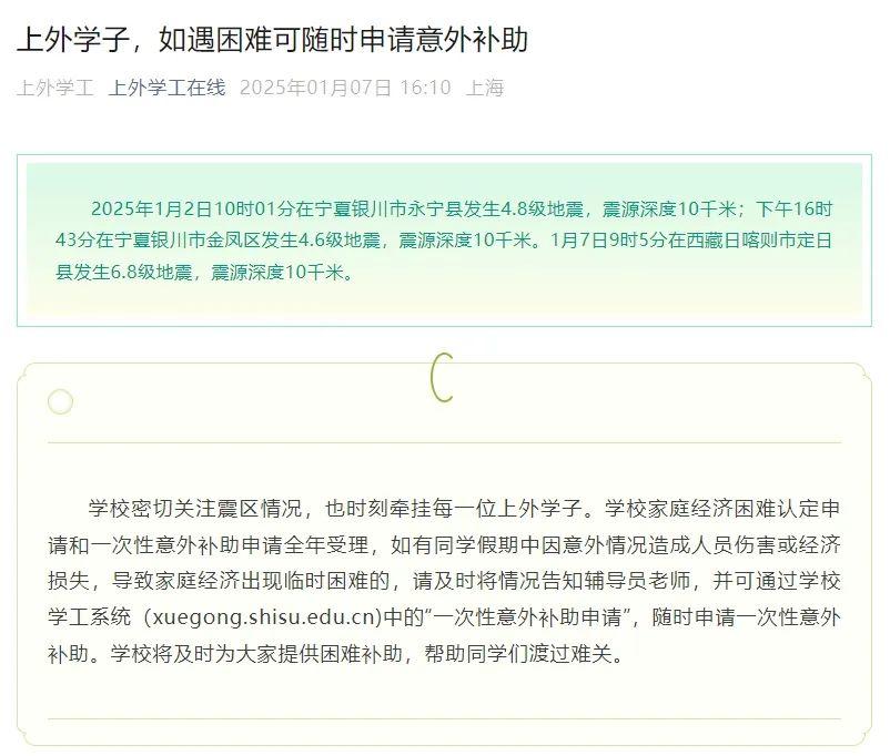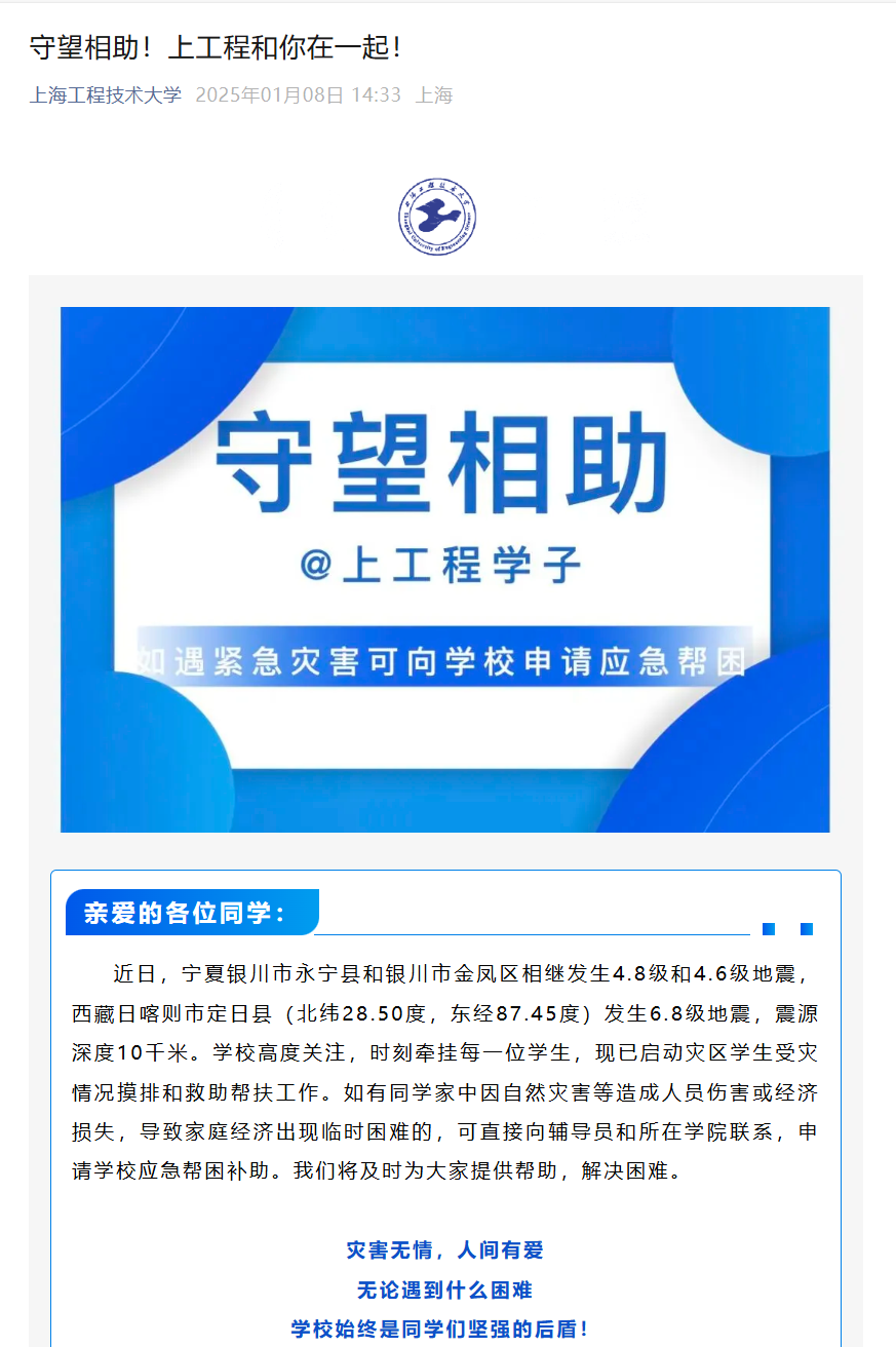 各高校还通过微信群等逐一排查反馈,确保受地震灾害影响的学生能及时获得相应帮助。