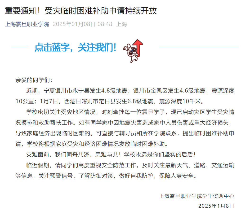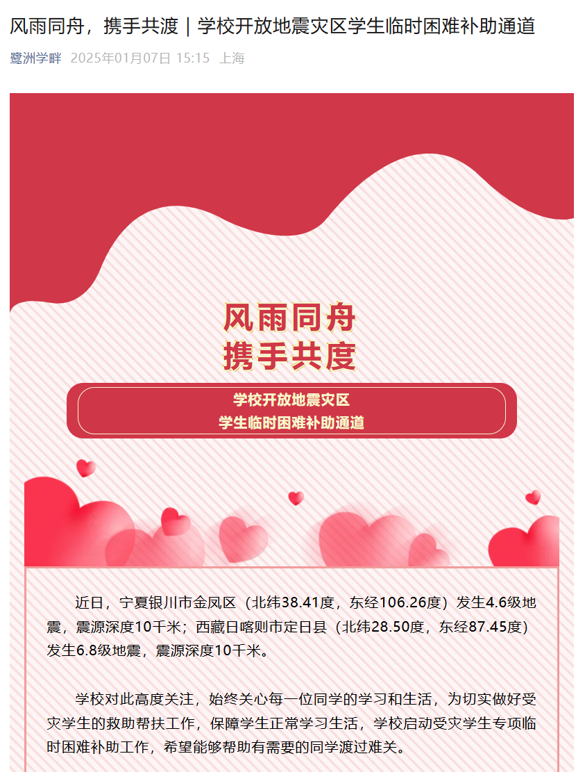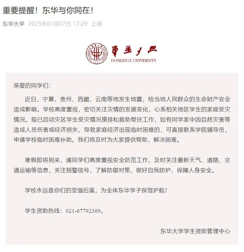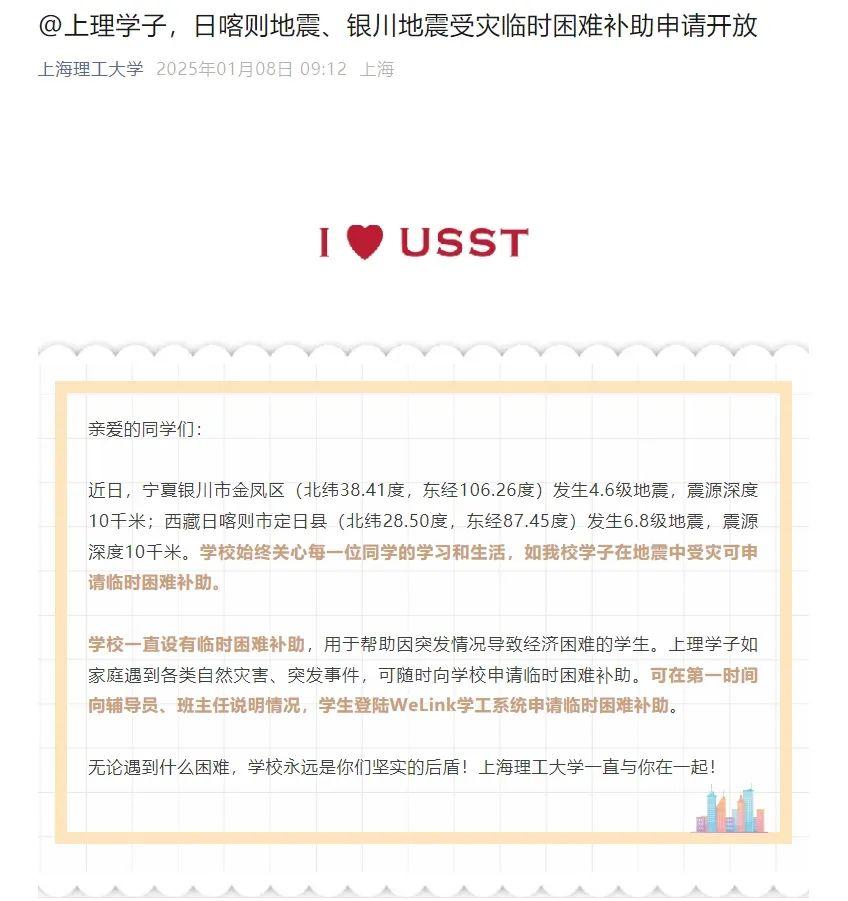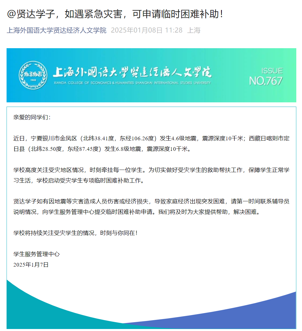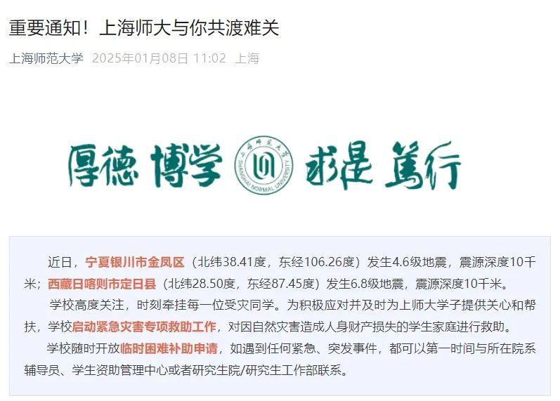 各高校还通过微信群等逐一排查反馈,确保受地震灾害影响的学生能及时获得相应帮助。