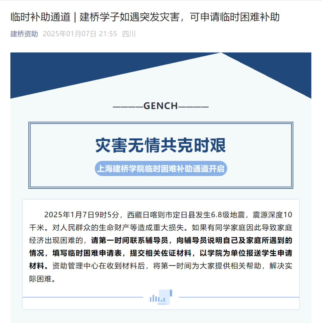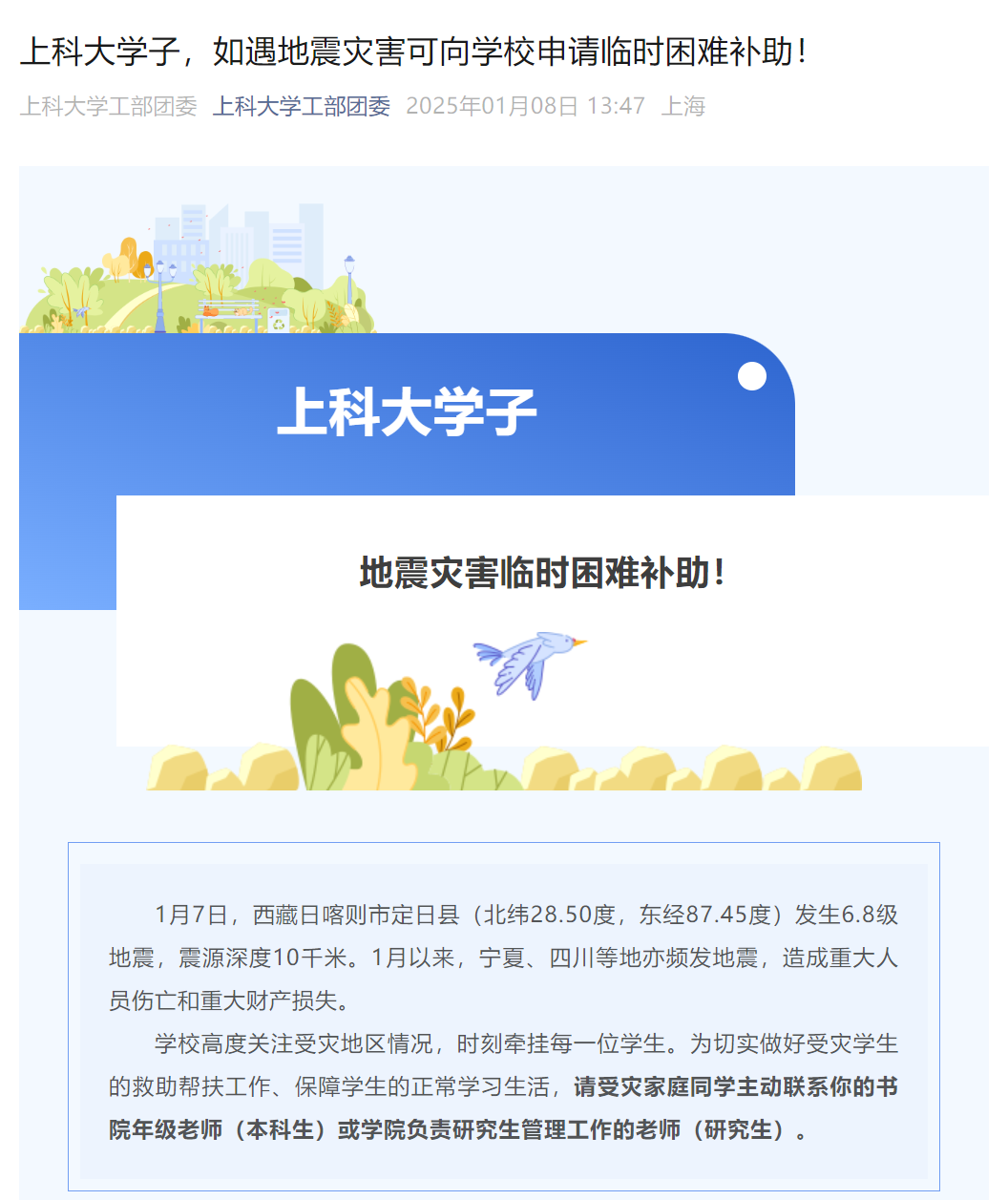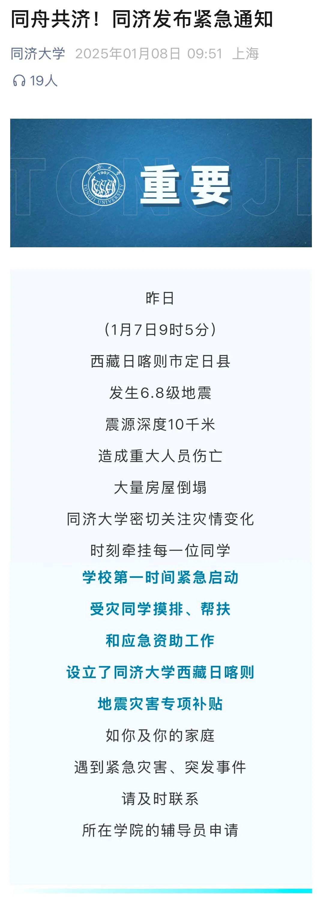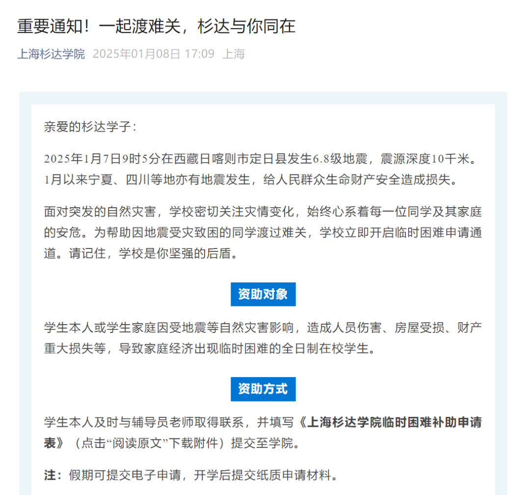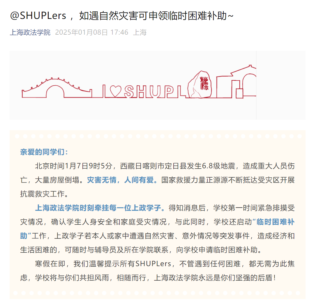 各高校还通过微信群等逐一排查反馈,确保受地震灾害影响的学生能及时获得相应帮助。