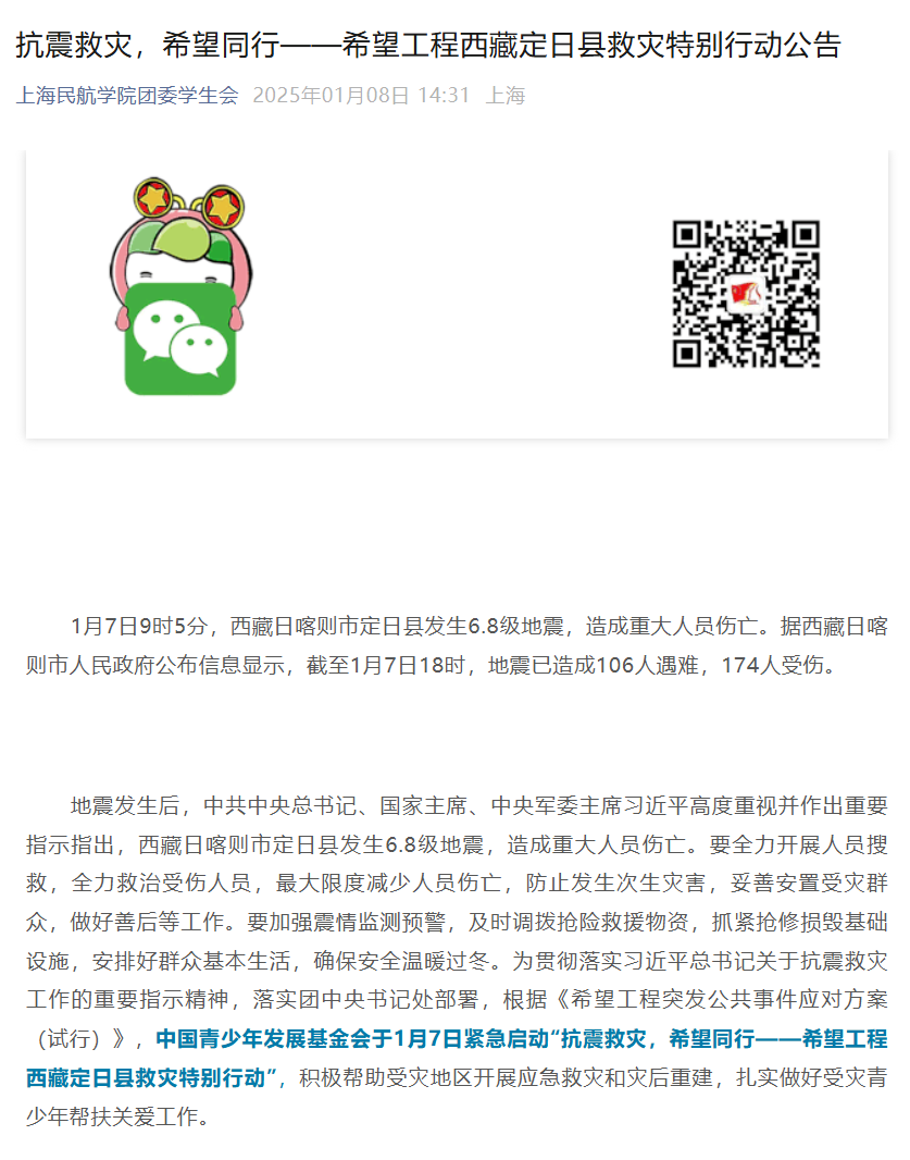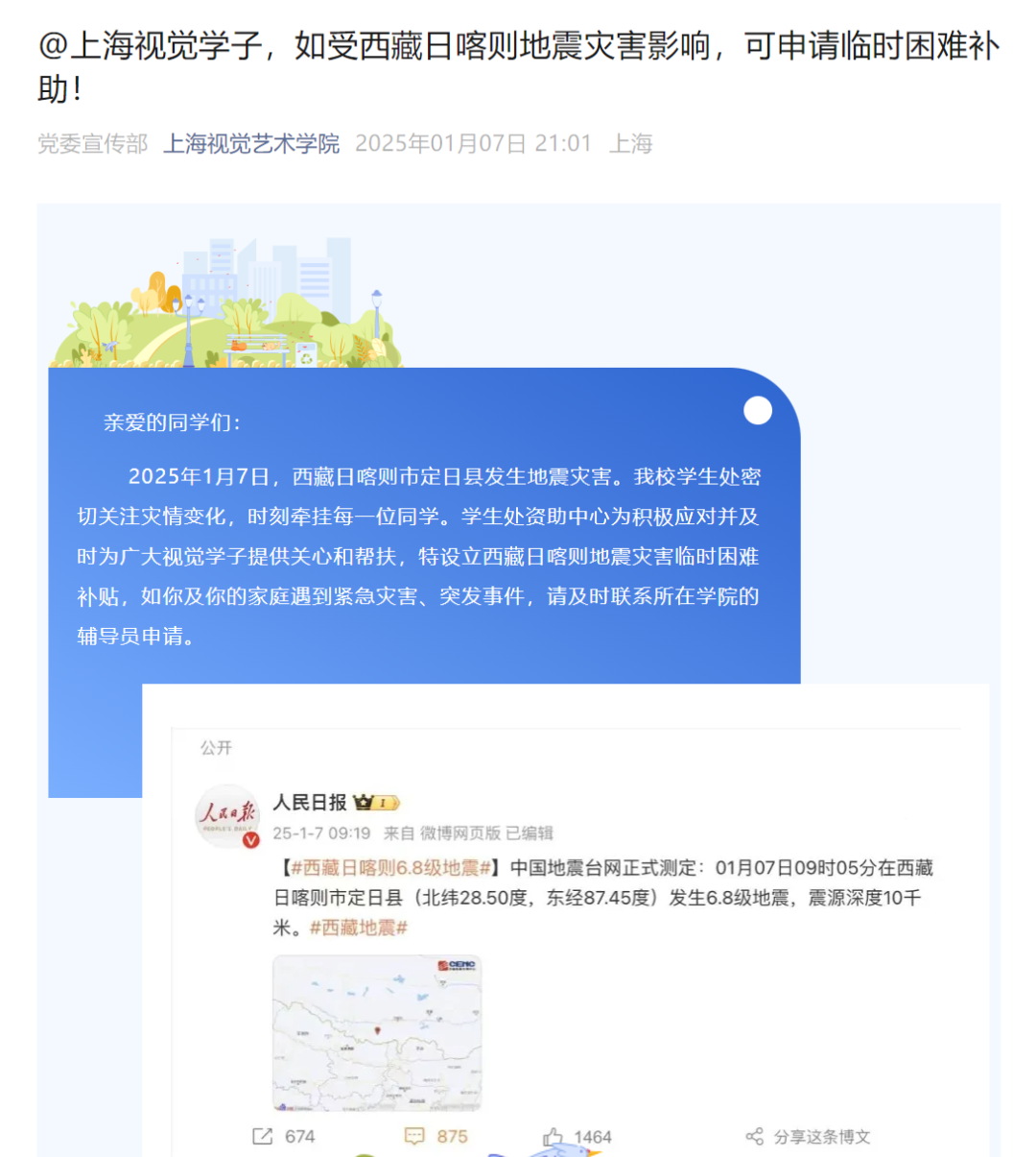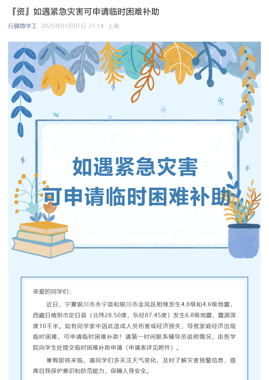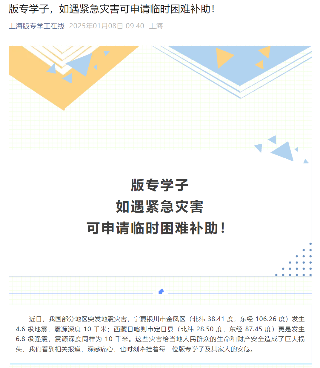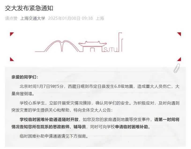各高校还通过微信群等逐一排查反馈,确保受地震灾害影响的学生能及时获得相应帮助。