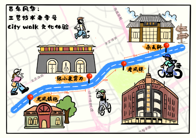 上海商学院依托商科专业及泛服务业学科特色,在“百人·百访·百年老字号”寒假社会实践活动中设计“老字号中的非遗”和“老字号City Walk路线”两个专项。他们在“非遗文化专项”中亲身体验非遗技艺,探索传统与现代结合的创新路径,打造独特文化体验的研学、旅游路线,让老字号在现代城市发展中焕发新生。