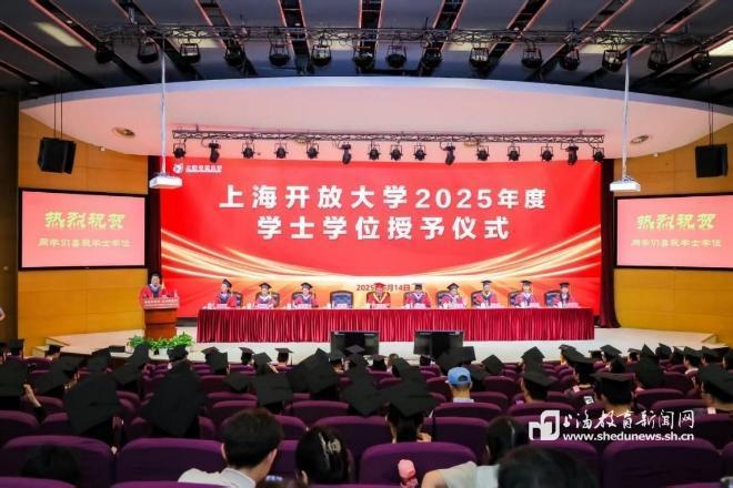本网讯 (记者 程媛媛)6月14日下午,上海开放大学2025年度学士学位授予仪式在国际会议中心报告厅举行。2024—2025学年,上海开放大学共有979名毕业生喜获学士学位,在现场感受属于他们的荣耀时刻。他们奋斗在制造、金融、教育、卫生、信息技术、交通运输、现代服务、公共管理、社会工作等各行各业,年龄最小的23岁,最大的56岁,他们用坚持不懈的学习实现了自己的梦想,充分展现了终身学习的美丽图景。