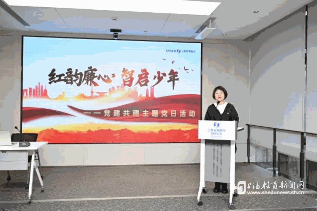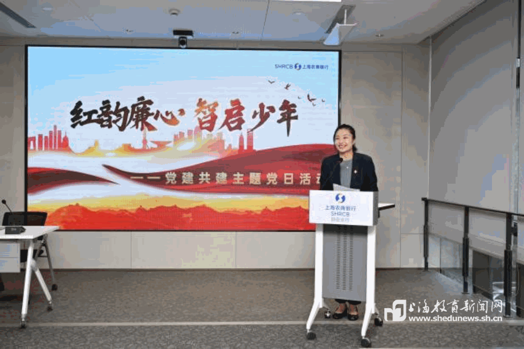 上海农商银行静安支行副行长韩菁作为活动东道主致辞。她表示,自2023年共建工作启动以来,各支部已多次携手开展党建活动。今年,联建队伍进一步扩大,彰显了党建共建的深厚情谊。支行以服务区域发展为己任,积极履行社会责任,打造“心家园”公益服务品牌,融合群众需求。同时,积极联合街道、学校等推出“小小金融家”财商课程,助力青少年成长。未来,支行将持续深化中央八项规定精神的贯彻落实,并以此次活动为起点,与上海教育系统及共建学校深化战略合作,探索党建赋能青少年教育的新路径。