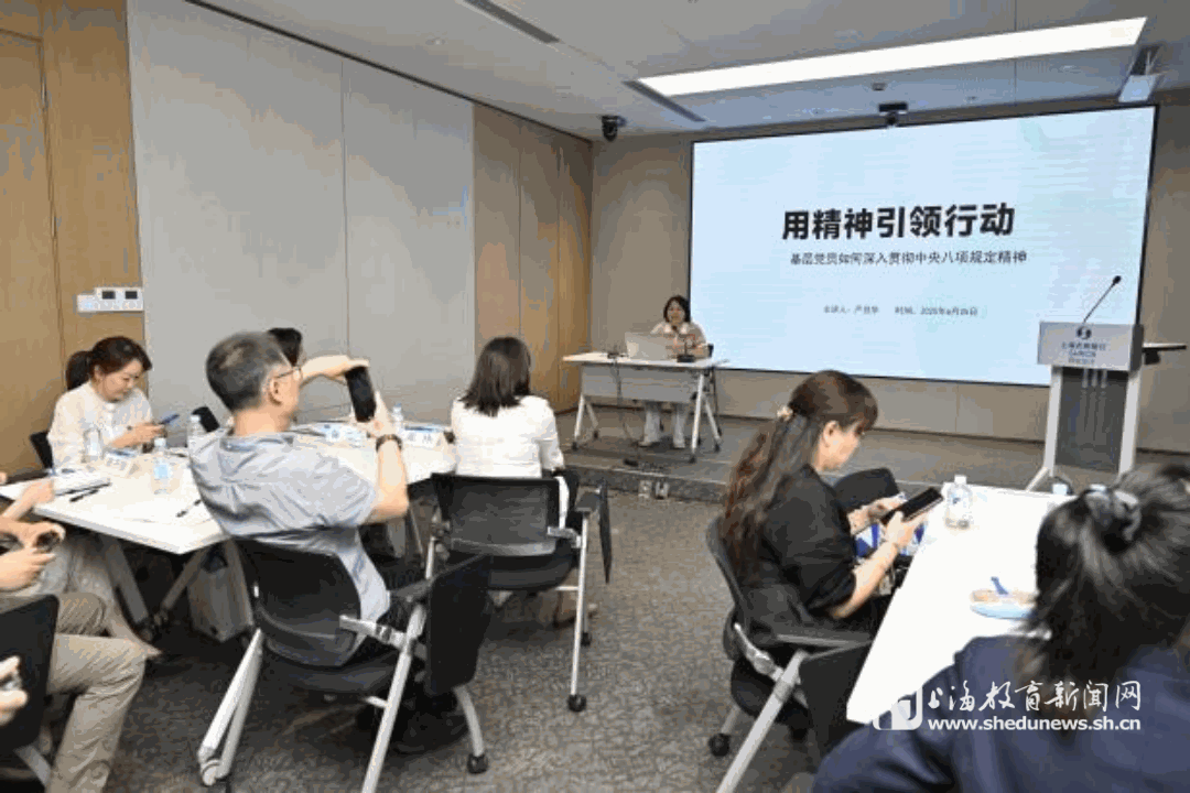 新闻宣传中心、教育新闻网党支部书记严旦华以《精神引领行动——基层党员如何学深悟透中央八项规定精神》为题讲授专题党课,围绕“核心要义解读”“日常行动引领”“典型案例警示”“基层宣传注意事项”四个维度展开系统阐释,为列席党员在理论学习与实践工作方面提供了清晰指引。