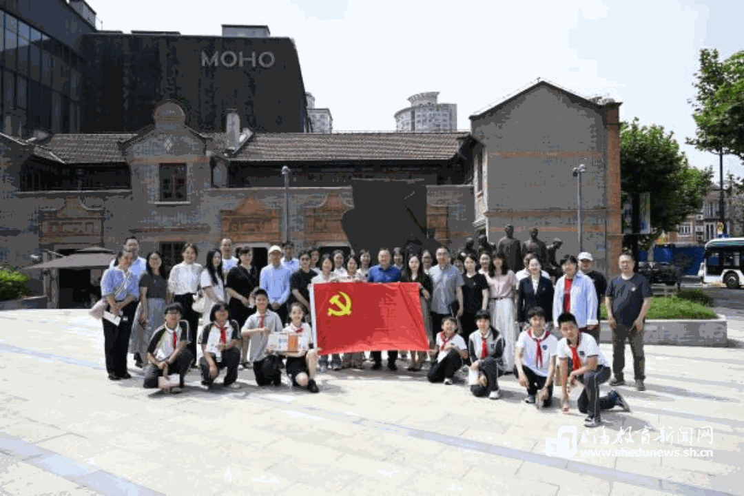为庆祝中国共产党成立104周年,深入贯彻中央八项规定精神学习教育,推动党建与业务深度融合,6月25日,上海市教卫工作党委新闻中心(上海教育电视台)新闻宣传中心、教育新闻网党支部携手虹口实验学校党总支、崇明大公中学党支部、虹口继光初级中学党支部、静安区二中心小学党支部及上海农商银行静安支行第三党支部,联合开展“红韵廉心 智启少年”党建联建暨“迎‘七一’”主题党日活动。