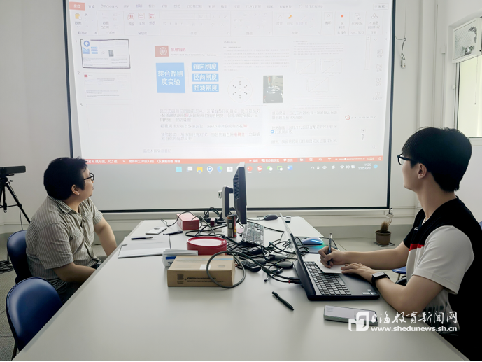 而校外产业导师的“实战密码”,则藏在车间的每一个细节里。上海机床厂高级工程师房小艳带领学生深入装配车间,手把手示范精密导轨的微米级调整工艺。“先让零件达标,再追求参数完美!”科泰思公司李四杰在自动铺带设备前给学生“划重点”,这些来自生产一线的“经验密钥”让学生少走弯路。“试试将蒸汽加热改成循环水浴加热。”看着徐同学为中试传热难题愁眉不展,黄山加佳荧光材料公司王济民以“土办法”进行启发,这个看似简单的调整使产品合格率提升30%。