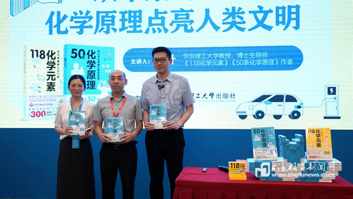 “以化学之道,解生活之理,格万物之致……”8月17日晚,《50条化学原理》新书发布会暨主题分享会“从木柴到电池:化学原理点亮人类文明”在上海书展举行。活动由华东理工大学出版社主办,该书作者、上海市“科普新锐人物”戴升教授现场作专题演讲,华东理工大学出版社社长王雪及科普项目组编辑团队出席,吸引了众多读者参与。