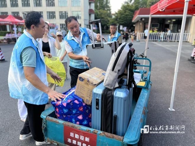 此外,学校后勤管理部门组建了高效、热情的后勤迎新志愿服务队,从校门到宿舍楼,后勤师傅载着新生大件行李来往穿梭。学校还专门安排后勤保障人员在迎新区域内动态巡逻,对手推车进行集中收取、高效调度,确保了小推车“随需随用”,极大方便了新生们自行运送行李。