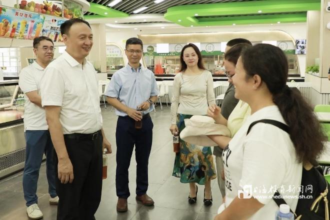 上午,校党政领导及相关部门负责人走访看望新生及家长,慰问迎新志愿者和工作人员。在第一食堂,上财党委书记许涛与新生家长交谈,面对新生家长对于孩子刚入学可能不适应的担忧,他表示,学校将在各个方面帮助新生同学们适应入学生活,请家长放心把孩子交给学校。同时,他嘱咐后勤工作人员,要继续做好保障工作,从新生家长的角度出发,将各方面做的更加细致贴心,让家长和学生放心。迎新日天气炎热,他也嘱咐工作人员多喝水,注意防暑。