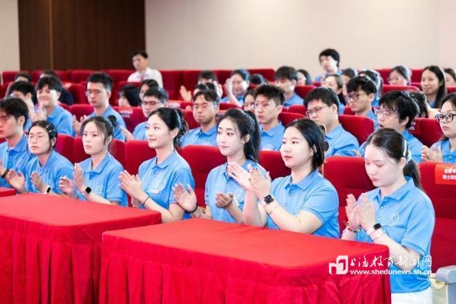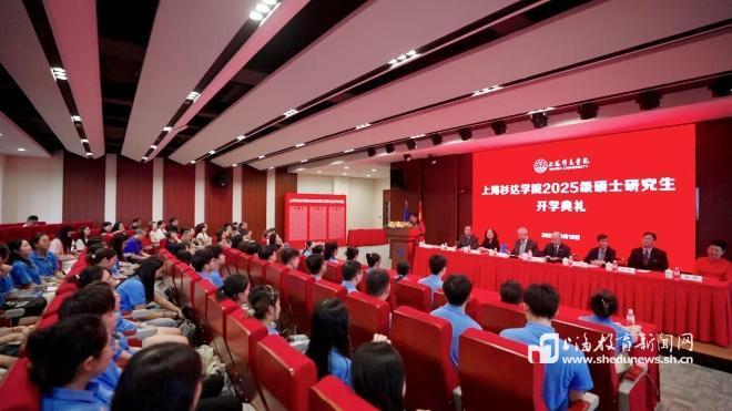 本网讯 (记者 程媛媛)9月15日下午,上海杉达学院2025级硕士研究生开学典礼在金海校区举行。董事长朱绍中致辞,校长陈以一寄语新生,校党委书记李蔚为新生代表佩戴校徽。来自金融、电子信息、护理专业的60名杉达首届硕士研究生齐聚一堂,在全体校领导、校内导师、行业导师代表、职能部门负责人的见证下,亲历这一具有里程碑意义的时刻。