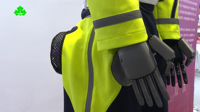 这款特别的机器人制服,是由东华大学师生团队所设计。通过选用高性能功能性面料,这款服装既可以供可靠防护,又通过专业设计提升视觉辨识度,同时还考虑到了机器人的使用特点。东华大学学生史璇介绍说:“长时间工作会有一些热量的产生,裤子的位置用网状的面料,这个地方是可以散热的,采用了空气层,更加的防皱和柔软。”
