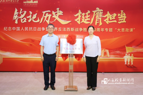 活动中,上海对外经贸大学党委副书记、副校长沈艺,宝山区委宣传部副部长、区委网信办主任刘德龙共同为上海对外经贸大学“大思政课”实践育人基地揭牌,标志着上海对外经贸大学和上海淞沪抗战纪念馆在思政教育领域的合作正式开启。基地将成为学校开展实践教学、培育时代新人的重要阵地,推动馆校资源共享、优势互补,共同打造思政教育新样板。