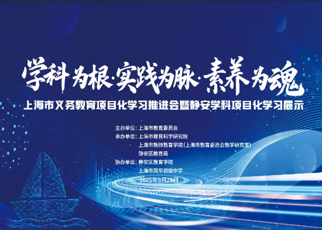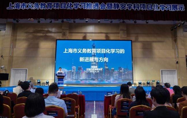 9月25日下午,上海市义务教育项目化学习推进会暨静安学科项目化学习展示活动在上海市风华初级中学举行。会议以“学科为根·实践为脉·素养为魂”为主题,聚焦学科项目化学习的区域推进与课堂实践,通过课堂教学观摩、区校经验分享、教学案例展示、专家微报告等多种形式,全面呈现上海在深化课程教学改革、落实核心素养导向的育人方式转型等方面的探索成果。上海市教育委员会副主任杨振峰、静安区人民政府副区长龙婉丽、上海市教育科学研究院党委书记祝郁、上海市教师教育学院(上海市教育委员会教学研究室)院长王洋等出席会议。