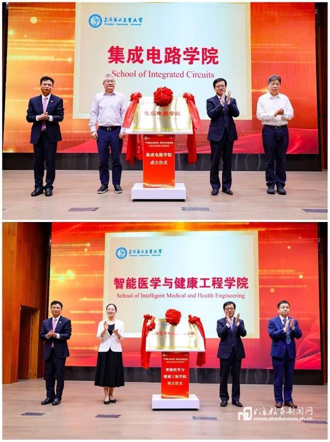 本网讯 (记者 程媛媛)9月28日上午,以“产教融合促发展,踔厉奋发新征程”为主题的上海第二工业大学办学六十五周年发展大会在金海路校区举行。会上,学校集成电路学院、智能医学与健康工程学院揭牌成立。