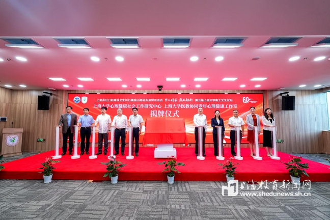 开幕式上,虹口区人大常委会主任朱勤皓,上海大学原党委书记成旦红,虹口区委副书记姜爱锋,上海大学党委常委、副校长王从春等领导出席。现场同步举行“上海大学心理健康社会工作研究中心”“上海大学医教协同青年心理健康工作室”揭牌仪式。两大平台的成立,标志着虹口区精神卫生中心与上海大学在医教研协同、校院融合发展方面迈出关键一步,将有力推动心理健康服务体系建设与高层次人才培养。