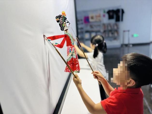思南新天地幼儿园博物馆课程中安排了皮影戏体验环节,平时坐不住的孩子表现出难得的专注