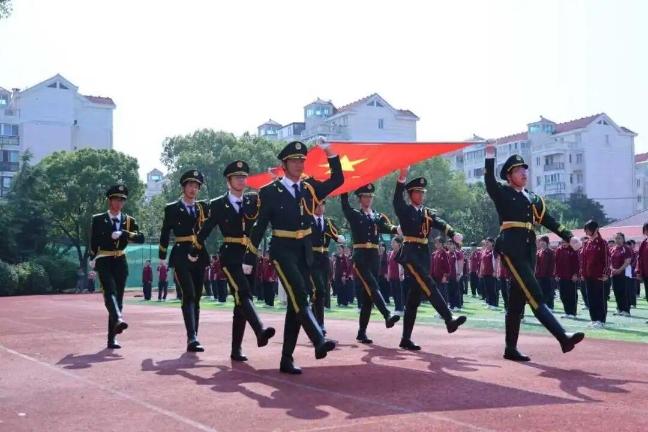 上海市漕泾中学举行“强国有我,共筑爱国梦”主题升旗仪式,全体同学共同宣誓:以青春之我,守护国旗的鲜红;以智慧之我,丰富民族的色彩;以奋斗之我,搭建梦想的阶梯;以担当之我,贡献青春的力量。