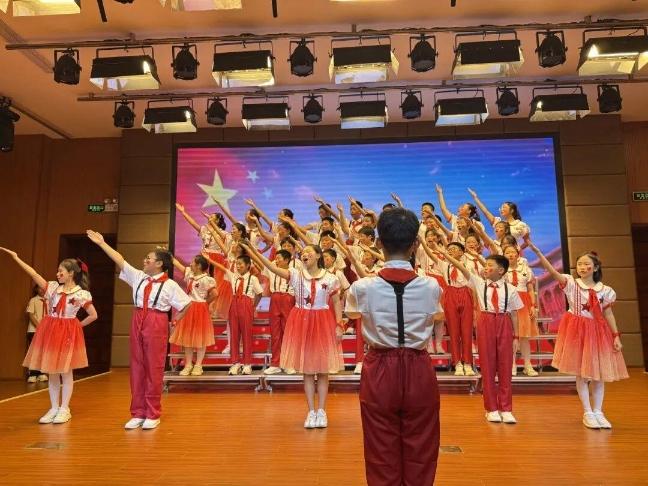 上海市杨浦区许昌路第五小学举办“乐韵传薪火,童声颂祖国”小小音乐会暨校家社联动音乐思政主题活动。校园内红旗飘扬,歌声回荡,全体师生以音乐回望峥嵘岁月,用童声传递家国情怀,为祖国母亲献上最诚挚的祝福。