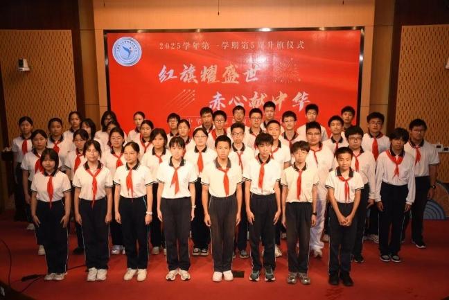 上海理工大学附属初级中学举行“红旗耀盛世,赤心献中华”升旗仪式。初三学子齐声高唱《我和我的祖国》,用歌声表达对祖国最深情的祝福。