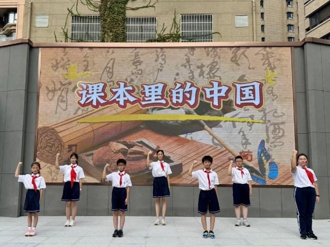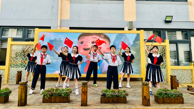 上海棋院实验小学的升旗仪式上,同学们用《我爱我的祖国》唱跳表演表达对祖国母亲的爱。