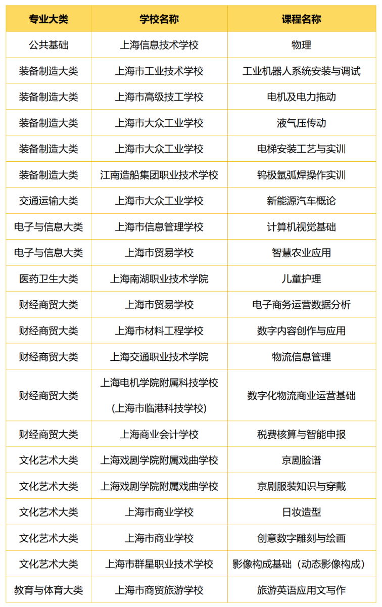21门!上海市中等职业学校在线开放课程2025年上线名单公布