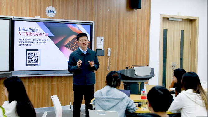 通过对连续5届、近600名法学本科生的调研,粟瑜和团队总结出课程教学存在“吸收难、应用难、创新难”三大痛点。聚焦痛点,团队从课程内容、教学资源、教学方法、教学评价与课程思政五个方面入手,对传统课堂进行系统性重塑。为了让学生听得懂、用得上,他们在课堂上架起“法工桥”,邀请工科老师介绍智能时代“AI换人”的技术基础及其发展趋势;开设“虚拟仲裁庭”“云上谈判间”,让学生贴近实战提升裁判能力与非诉处置能力。通过讲述民生法治先进人物事迹的“劳法先锋”、鼓励学生访谈校园劳动故事的“劳友记”等教学模块,增强学生对现实生活的关怀。