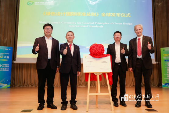 会上,华东理工大学党委副书记沈海涛,世界绿色设计组织荣誉主席乔莱恩,中国工程院院士、华东理工大学资源与环境工程学院院长汪华林,华东理工大学艺术设计与传媒学院院长汪军共同发布了《绿色设计国际标准总则》。
