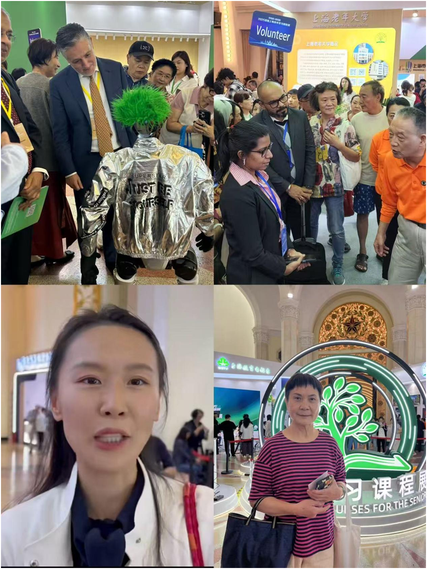 展会现场,不同年龄、身份的参与者,用实际行动诠释“学无界·龄无限”的理念。70岁的胡玉英是上海老年大学书画班学员,她不仅在班中精进绘画技艺,还带领校书画社成员参与多场公益活动,“退休后重拾童年爱好,还能通过笔墨传递传统文化,特别有意义。”68岁的薛培丽,早年在国外生活,回沪后加入老年大学,先后学习旅游日文与烹饪,“每学会一项技能,都觉得生活更充实,成就感满满。”75岁的朱东是老年大学形体类课程老师,她带领学员现场展示优雅步态,“年龄从不是追求精致的阻碍,希望用行动告诉大家,晚年生活也能像‘艺术展’一样精彩。”
