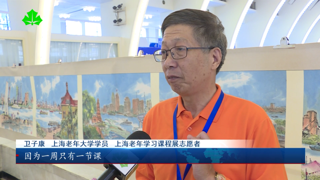 展会另一侧,68岁的老年大学学员卫子康也正在志愿者岗位上忙碌着。看展人群中不少是刚退休的年龄,这让卫子康想到了自己8年前,为了圆年轻时的歌唱梦想,他一退休就报名老年大学学声乐,八年下来已经学到声乐研修一年级。在志愿服务过程中,卫子康十分乐意分享自己的学习体会,他认为只有珍惜加坚持才能真正体会到老有所乐的滋味。