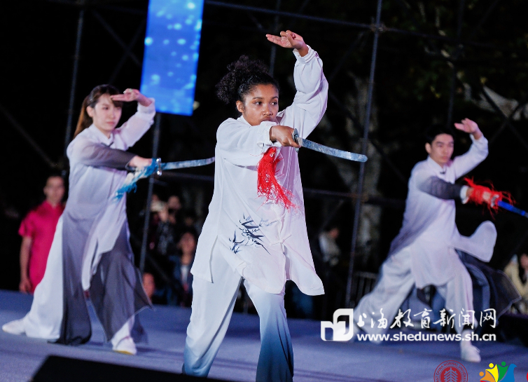 此外,华东师大中外学生与上海纽约大学国际学生联合表演《刀剑如梦》,中外乐器与武术招式巧妙融合,尽显东方神韵与青春活力;多国国际学生歌曲串烧《戏韵华章》以戏曲韵律为骨、时代心声为魂,开启古今对话;日本学生独唱《我爱你中国》,用歌声诉说对“第二故乡”的深情;中外师生合唱《这世界那么多人》,感恩校园相遇;最后,中外学生共同歌舞《相亲相爱》,为晚会画上圆满句号,留下文化交融的珍贵记忆。