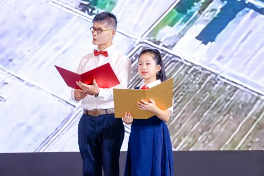 上海市杨浦区杭州路第一小学的学生与老年学员共同朗诵了诗歌《读中国》。孩子们稚嫩而真挚的嗓音与长者沉稳而富有磁性的声线相得益彰,他们用饱满的热情和深情的表达,将对中国文化的理解和对祖国山河的热爱娓娓道来。每一个字句都饱含深情,每一个眼神都传递着信念,这段充满感染力的朗诵赢得了现场观众持久而热烈的掌声,展现了老少两代人共同的文化自信和家国情怀。