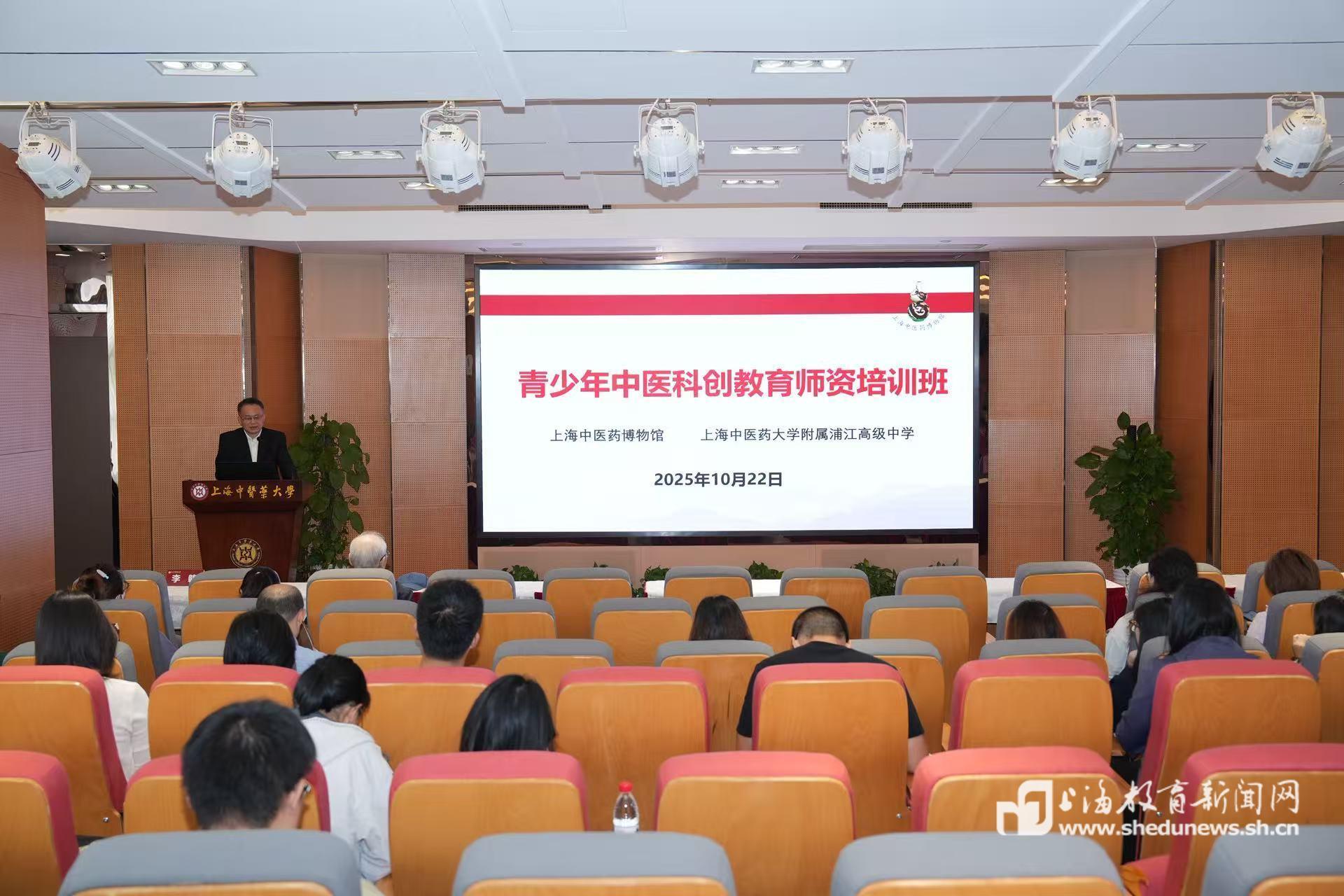 本网讯 (记者 程媛媛)为创新推动大中小学中医药科创教育一体化建设,着力打造“培养中医药未来科学家”馆校合作育人平台,10月22日,上海中医药博物馆与上海中医药大学附属浦江高级中学联合主办“青少年中医药科创教育师资培训班”。本次培训吸引了来自“培养中医药未来科学家”馆校合作育人平台参与学校、张江学区中小学的三十余名教师齐聚一堂,共探中医药科创教育进校园的创新路径。