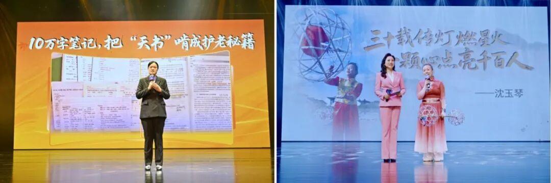 开幕式在徐汇区徐朗艺术合唱团带来的《唱支山歌给党听》中拉开序幕。4位来自不同领域的终身学习践行者通过情景微报告形式生动呈现了终身学习如何改变促进个人成长、服务社会发展的学习故事,体现了上海学习型城市建设的个体实践成果——养老护理员、上海开放大学智慧健康养老服务与管理专业学生张小勤6年考取多张技能证书,用专业知识守护万家夕阳,用学习带来的温暖回报社会;来自奉贤的沈玉琴授艺传薪,推动滚灯艺术进社区、进学校,让古老的艺术真正地活起来、传下去;世界技能大赛金牌获得者、上海科创职业技术学院邵茹鹏将传统榫卯与数字智造融合,完成从普通学生到世界冠军,再到人民教师的跨越;退役老兵王坚政则用AI数字音乐教程,带领银发族奏响时代新声,在奉献中体验到幸福与认同。来自张江镇社区学校和万科实验小学的诗歌朗诵《学习铸城,创见未来》,展现了终身学习在社区和学校的蓬勃发展。