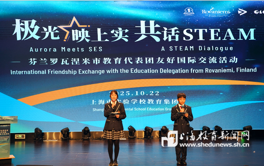 在AI技术日新月异的今天,STEAM教育如何跨越国界,实现更深层次的融合与创新?日前,上海市实验学校以“极光映上实 共话STEAM”为主题,携手芬兰罗瓦涅米市教育代表团,开启了一场跨越国界的教育对话。活动由上实学生电视台的赵思涵和李弘毅主持。