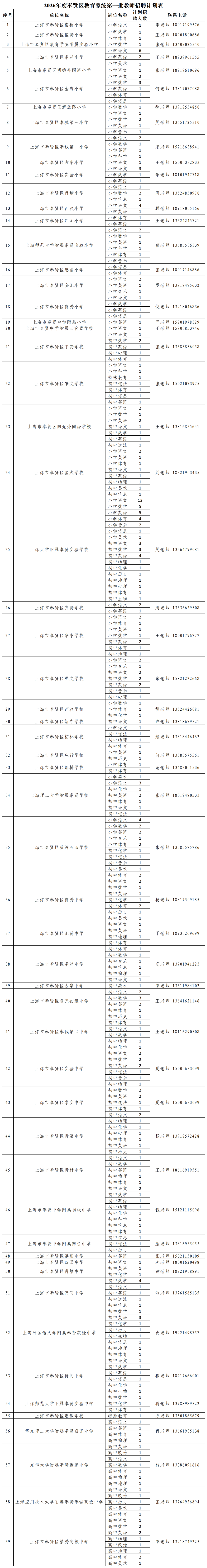 根据《上海市事业单位公开招聘人员办法》(沪人社规〔2019〕15号)的有关规定,结合奉贤区教育事业发展需求,现发布2026年度奉贤区教育系统第一批教师招聘公告。