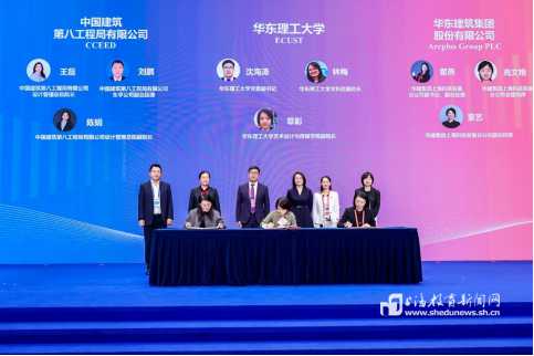 会上,艺术设计与传媒学院副院长章彰代表学校,与中国建筑第八工程局、华东建筑集团签署产学研合作协议。根据协议,三方将在人才联合培养、技术协同转化等领域深化合作,标志着华理科技成果落地通道进一步打通。华东理工大学党委副书记沈海涛、文科处副处长林梅见证签约。
