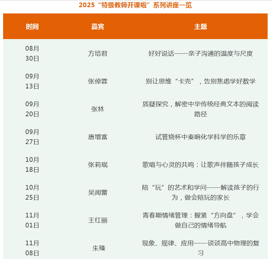 系列讲座由上海市特级教师、特级校长主讲,将围绕学生、家长、教师在成长和教育中的焦点和热点问题展开,旨在为学生健康、全面和快乐成长提供专业、权威的公益指导。