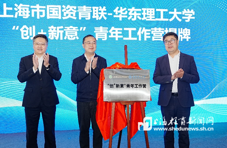 活动现场,邬斌、梁波、沈海涛共同为上海市国资青联-华东理工大学“创+新意”青年工作营揭牌,鲜红的牌匾揭开了双方协同育人的崭新篇章。这一工作营的设立,成为连接高校育才与国企用才的重要纽带,为青年成长搭建起实践创新的坚实平台。