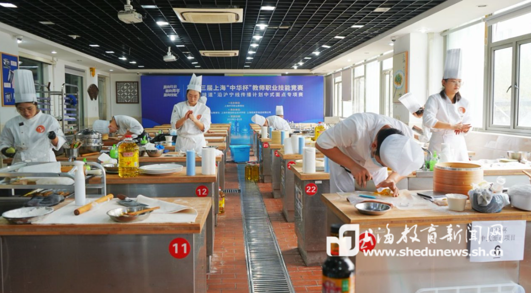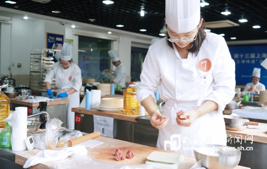 面粉与黄油碰撞的醇厚香气、擀面杖起落的均匀节奏、创意与文化交融的巧思,在方寸面点上酝酿出经典美味。11月1日,第十三届上海“中华杯”教师职业技能竞赛——“上海味道”沿沪宁线传播计划中式面点专项赛,在上海市曹杨职业技术学校开赛。作为沪上职业教育领域的年度技艺盛会,本次赛事不仅是传统面点非遗传承的实践舞台,更成为职业教育对接沿沪宁产业创新带、深化产教融合的生动注脚。
